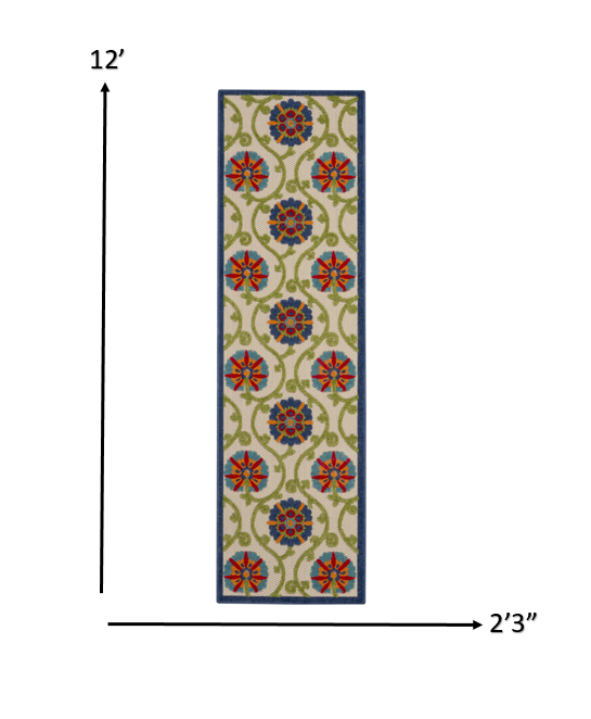 2’ x 12’ Blue Vines Indoor Outdoor Runner Rugg