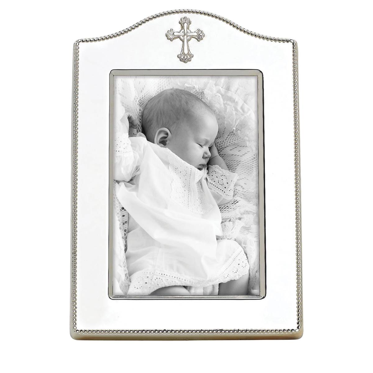 Including a gentle beaded border and a delicate cross at the top, this tarnish-resistant silverplate frame is the perfect gift to remember a cherished moment. Part of the Abbey Collection.