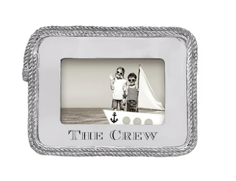 From our High Seas Collection, our "The Crew" 4" x 6" Rope Statement Picture Frame is the perfect way to showcase your crew! Artfully woven rope edges the perimeter of this handsculpted frame creating the perfect balance of casual nautical design and haute decor--on the High Seas or at Home. Handcrafted from 100% recycled, buffed-until-brilliant aluminum. Beautifully boxed in a Navy Mariposa Gift Box - we make gifting easy!