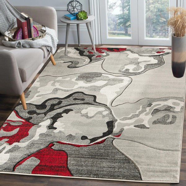 3'8'' x 5'6'' Red Abstract Hand-Carved Soft Rug