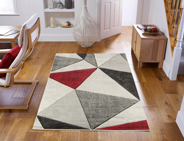 3'8'' x 5'6'' Red Geometric Hand-Carved Soft Rug