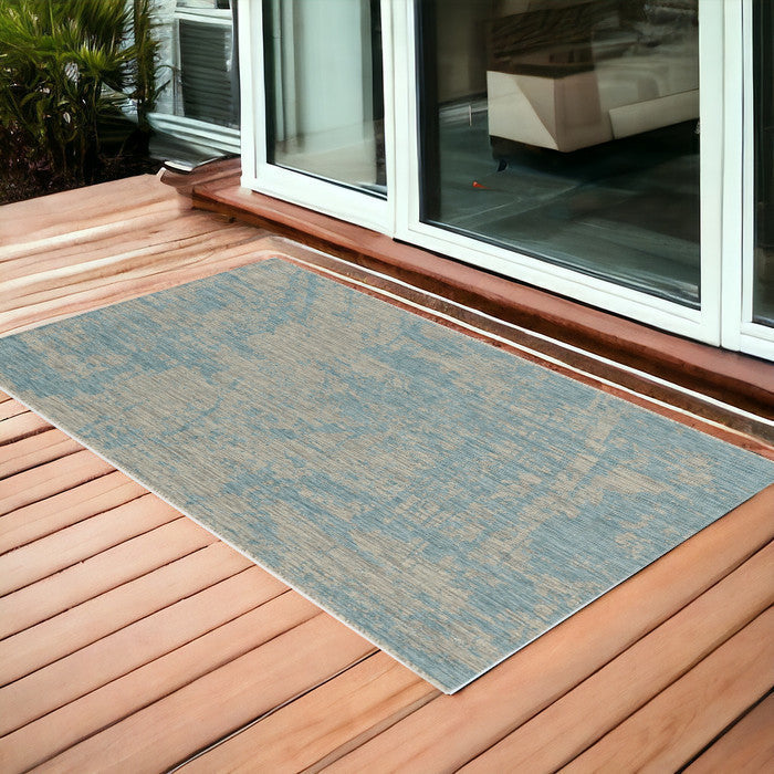3'X5' Teal Machine Woven Uv Treated Abstract Brushstroke Indoor Outdoor Area Rug