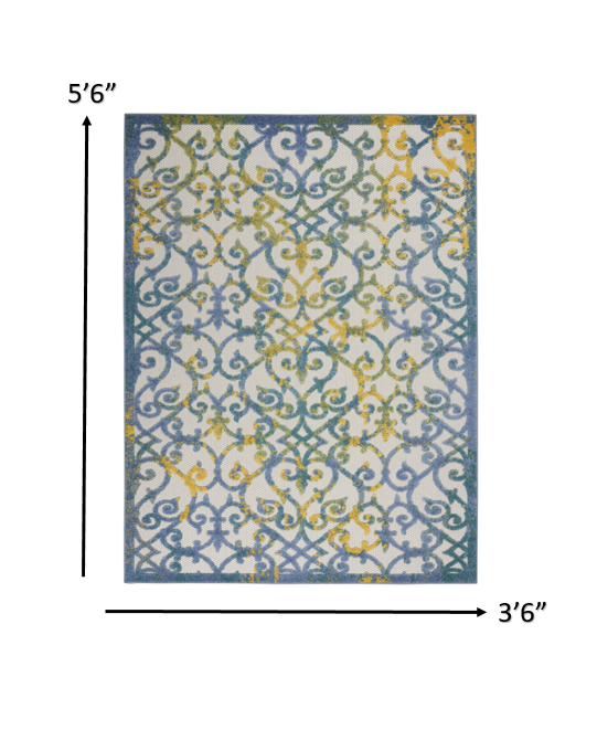 4' X 6' Ivory And Blue Floral Indoor Outdoor Area Rug