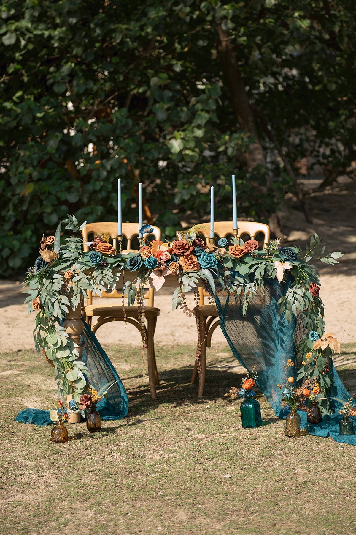 9ft Head Table Flower Garland in Dark Teal & Burnt Orange