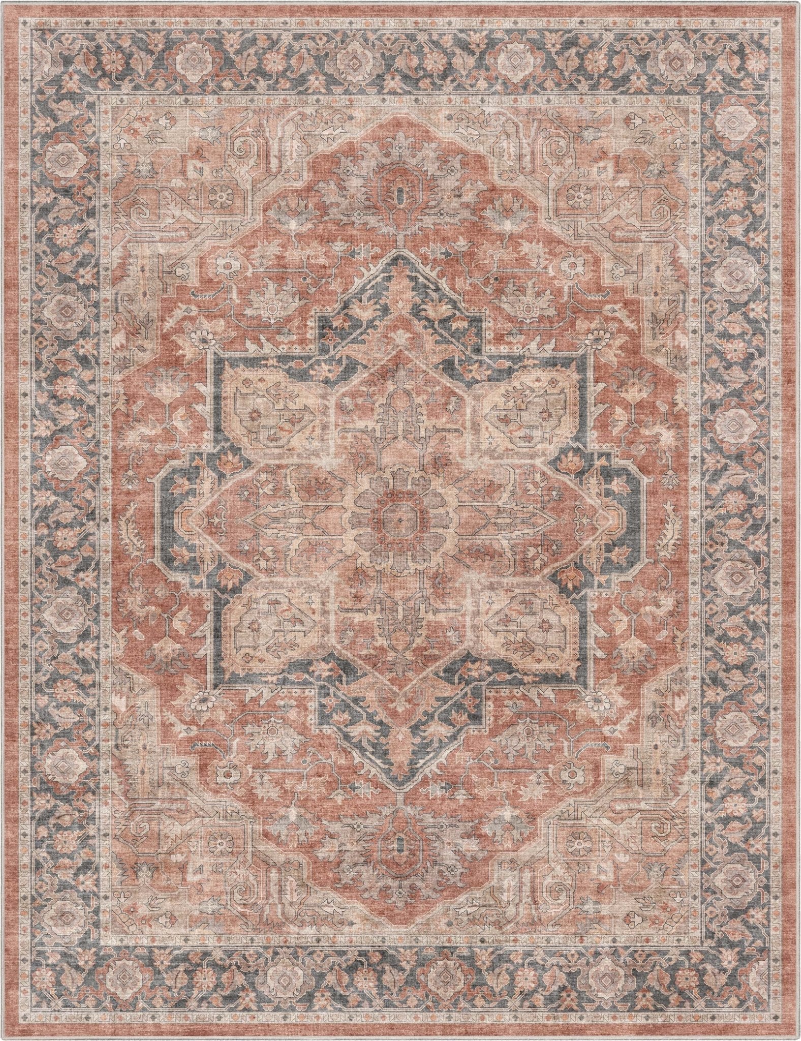 Inspired by traditional Persian Heriz rugs, the Apollo Serapi collection features elegant, geometric patterns with sophisticated designs and rich colors, plus timeless vintage styling that creates an appealing lived-in look. The versatile designs work well in rooms of all sizes, including casual and formal settings. Beyond appearance, the rugs are made for lasting beauty and stress-free cleaning. Soft, polyester top pairs well with recycled fiber backing to create a cozy, durable surface that is safe for all kinds of floors. Stain-resistant, non-shedding materials are easy-care, and the machine-washable design means each deep cleaning requires very little effort.