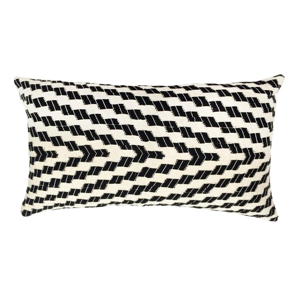 This black and white pillow is inspired by traditional textiles from Almolonga, Guatemala. The cotton used to make this pillow was handwoven by artisans using a back-strap loom.