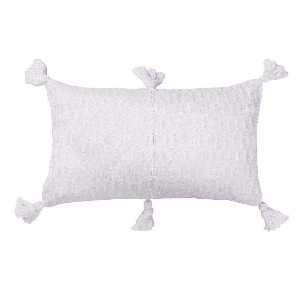 This bight white pillow is inspired by traditional textiles from Almolonga, Guatemala. The cotton used to make this pillow was handwoven by artisans using a back-strap loom.