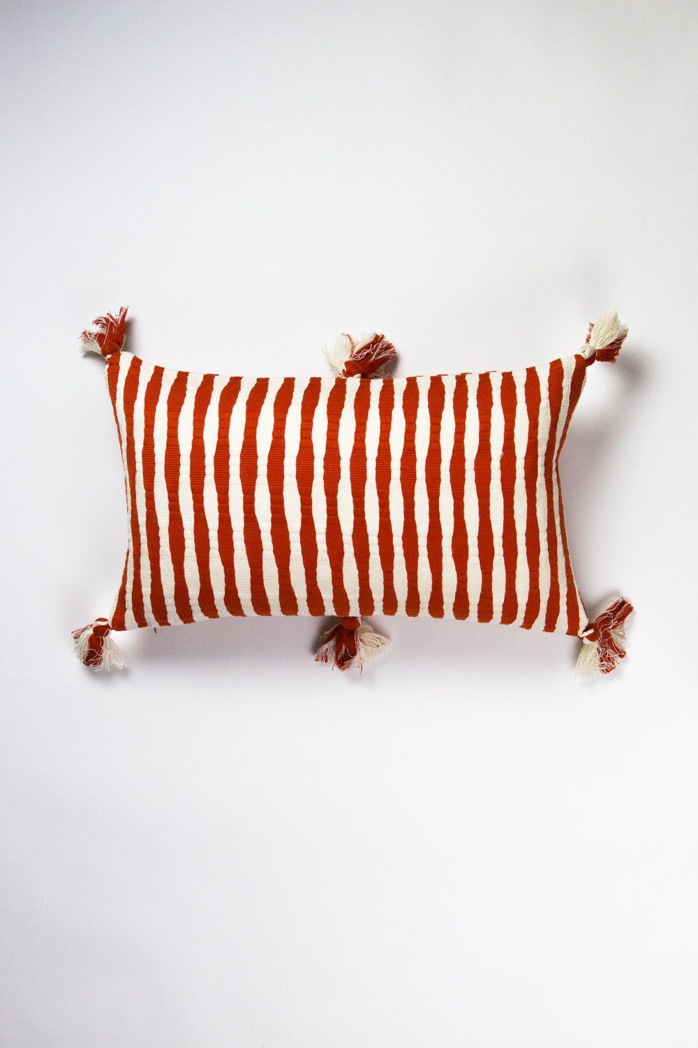 This red pillow is inspired by traditional textiles from Almolonga, Guatemala. The cotton used to make this pillow was handwoven by artisans using a back-strap loom.