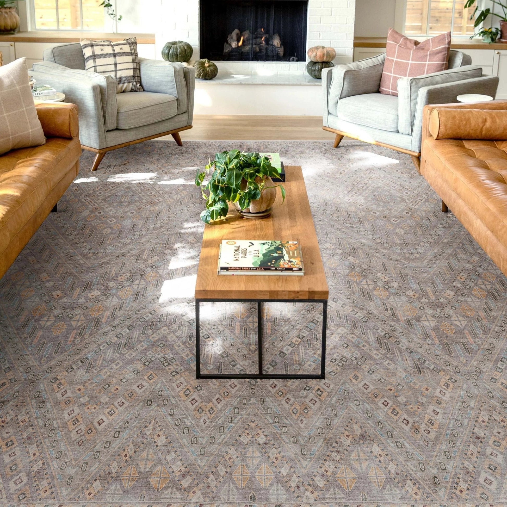 Finely detailed Persian and tribal-inspired patterns in the Asha Collection possess the visual appeal and intricacies of heirloom rugs due to our innovative printing techniques. The result, on soft chenille, looks and feels stunning, sophisticated, and luxurious. Produced in the USA, these rugs are machine washable and made with stain-resistant, non-shedding fibers. The low pile fits easily under doors that swing open. Durable, gentle cotton backing is derived from recycled materials to reduce waste and minimize use of natural resources during production. Use of a rug pad is recommended to extend the life of your rug and prevent shifting and sliding.
