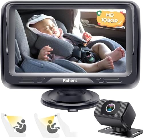 Baby Car Camera Ease Installation: Eye Protection Clear Night Vision 360° Rotation Stability Backseat Camera for 2 Kids HD 1080P Car Baby Monitor with Infant Carseat Camera Rear Facing -Rohent N06