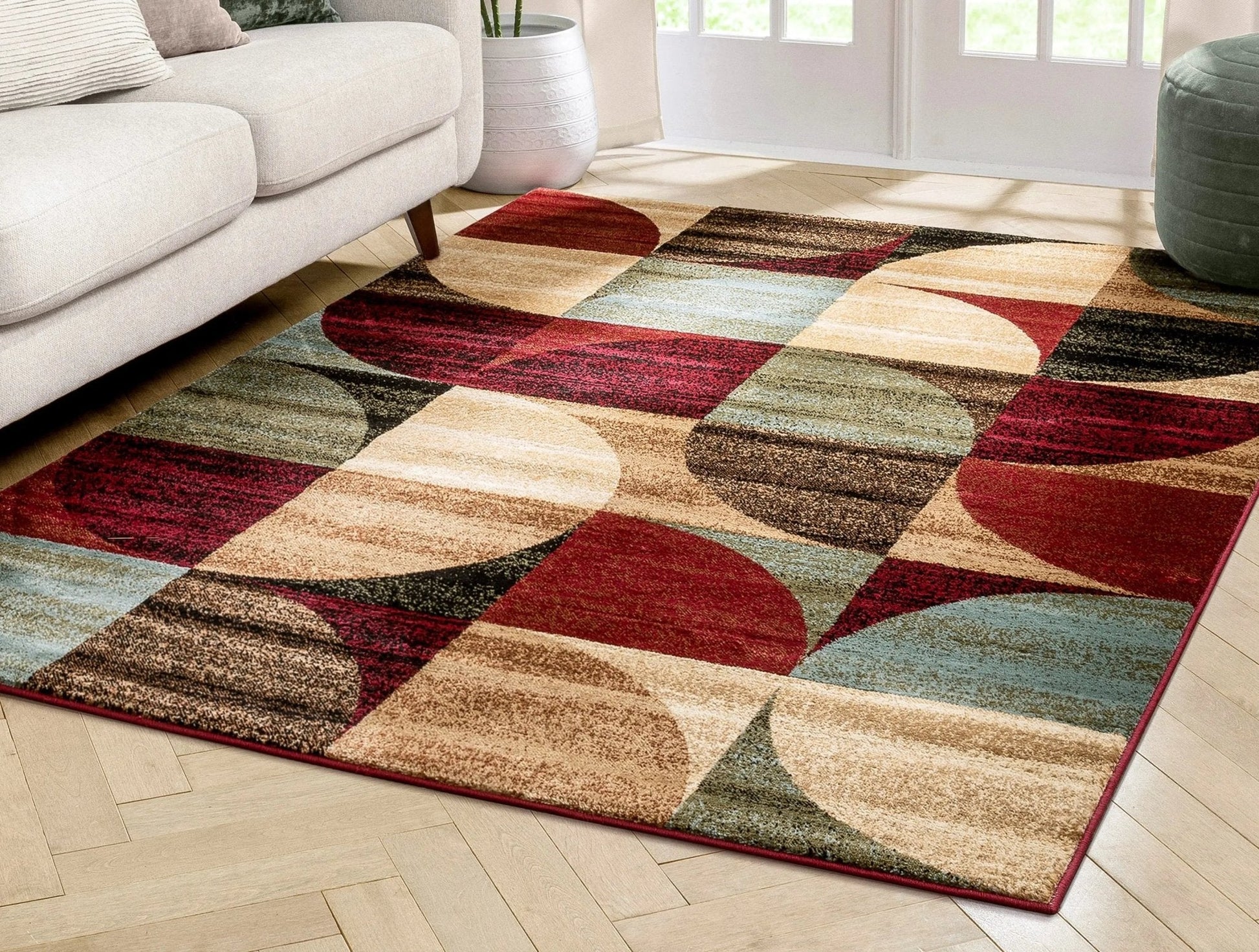 The Barclay collection brings together an array of patterns drawn from a carefully selected palette of Modern, European, and Persian Styles. Warm red, green, and blue jewel tones are accented by neutral tones of ivory and beige. The heat set polypropylene fiber gives a 0.4" pile that is soft, stain resistant, and doesn't shed or fade over time. The 100% jute backing is safe for wood floors and all four sides of the rug are serged for improved durability. A wide range of shapes, sizes, and designs means this collection has something for rooms of every size and style.