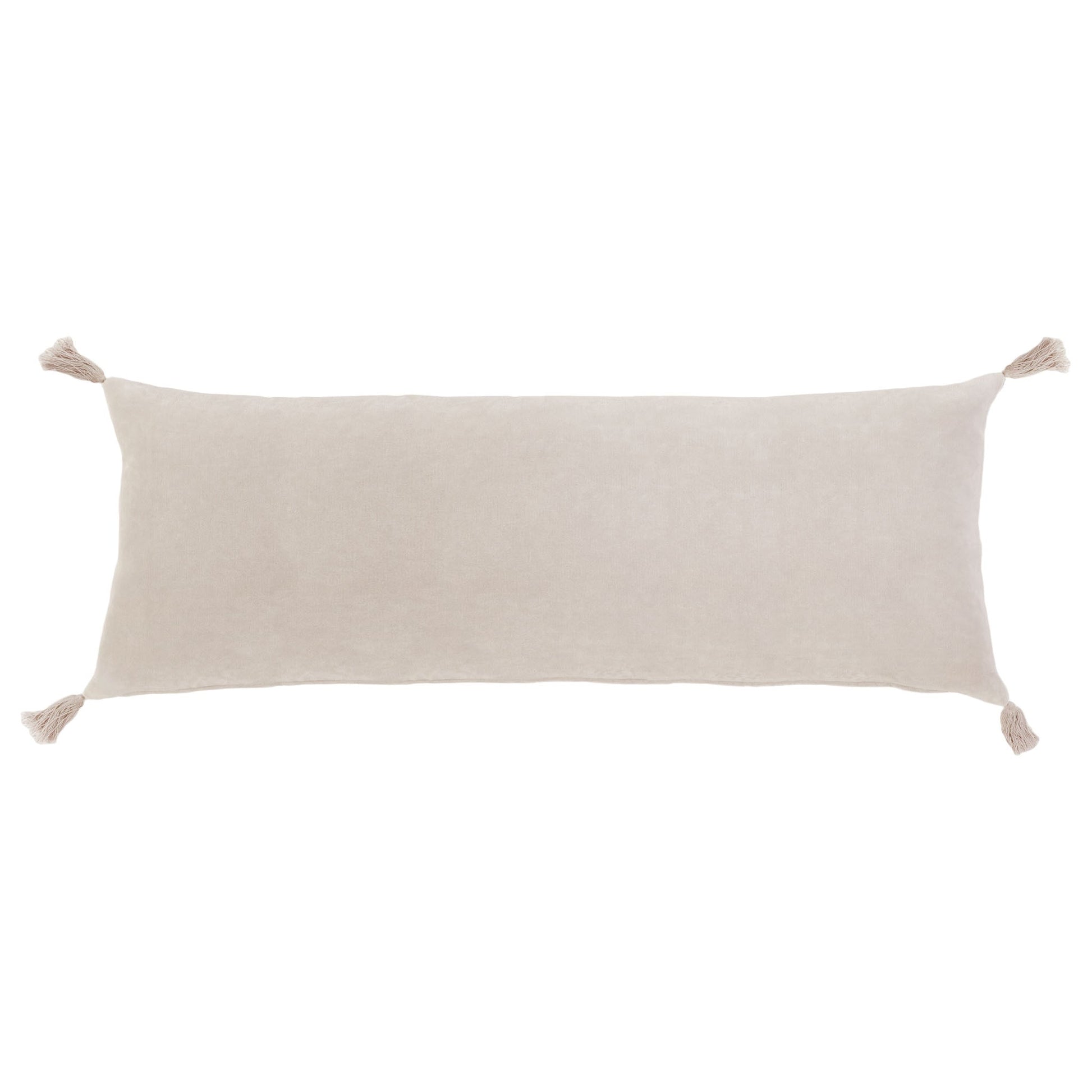 A soft velvet rectangular pillow with soft tassels on each corner.
