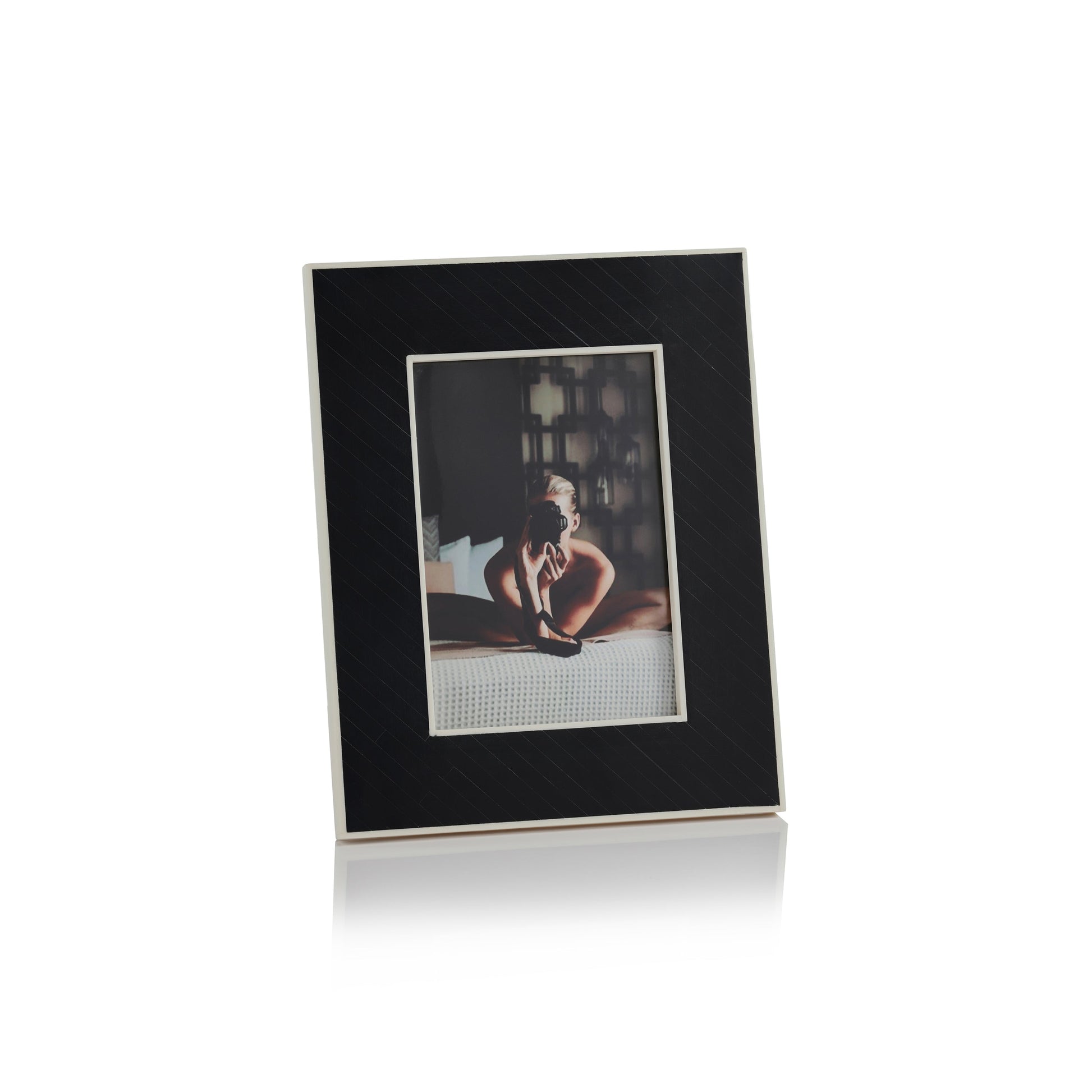 Black Bone Inlay Design Photo Frame with White Inner Border