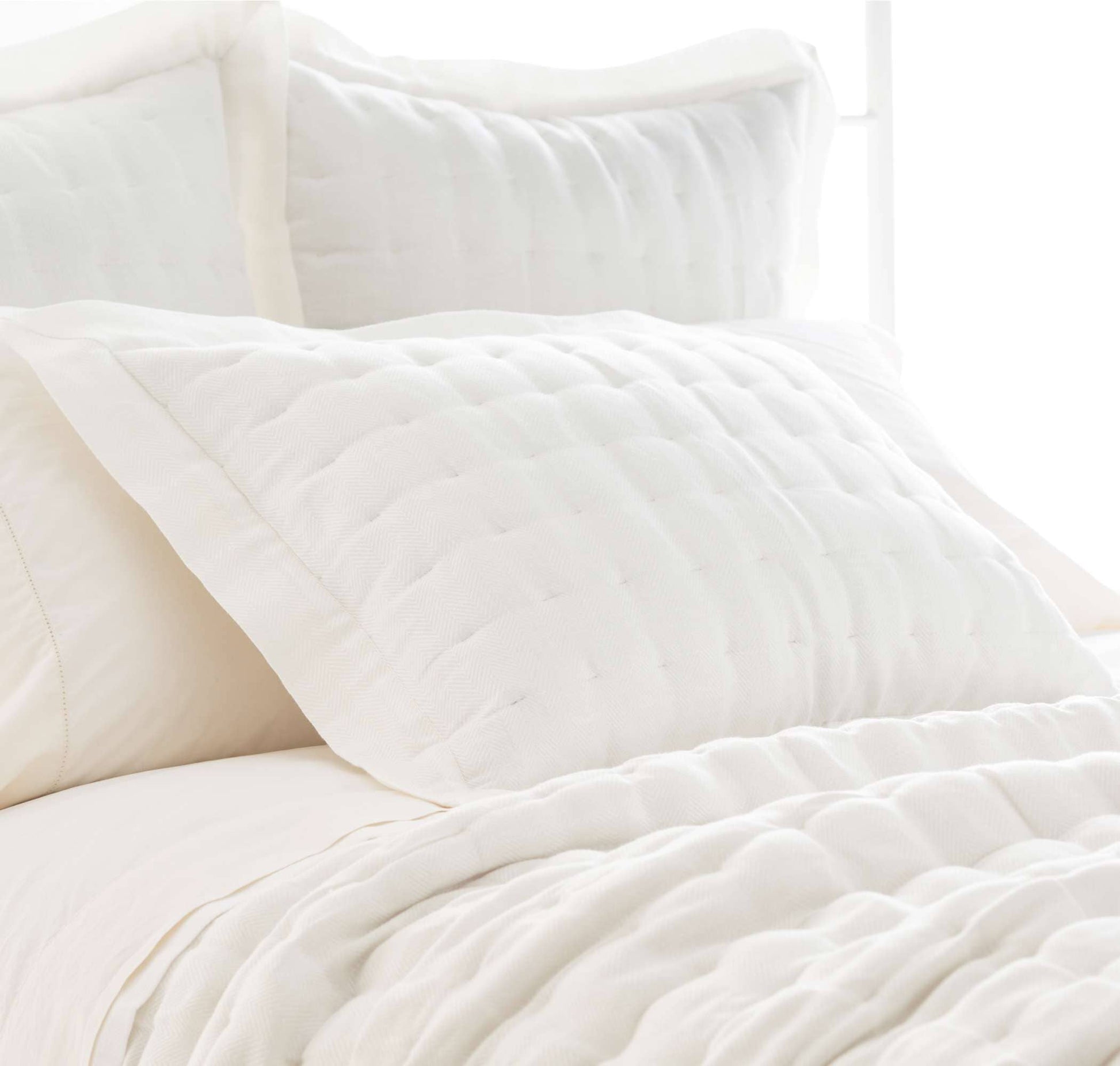 We can't get enough of this silky-smooth linen/viscose quilted sham. Featuring a subtle herringbone pattern in versatile ivory, it adds a touch of understated elegance to any room.