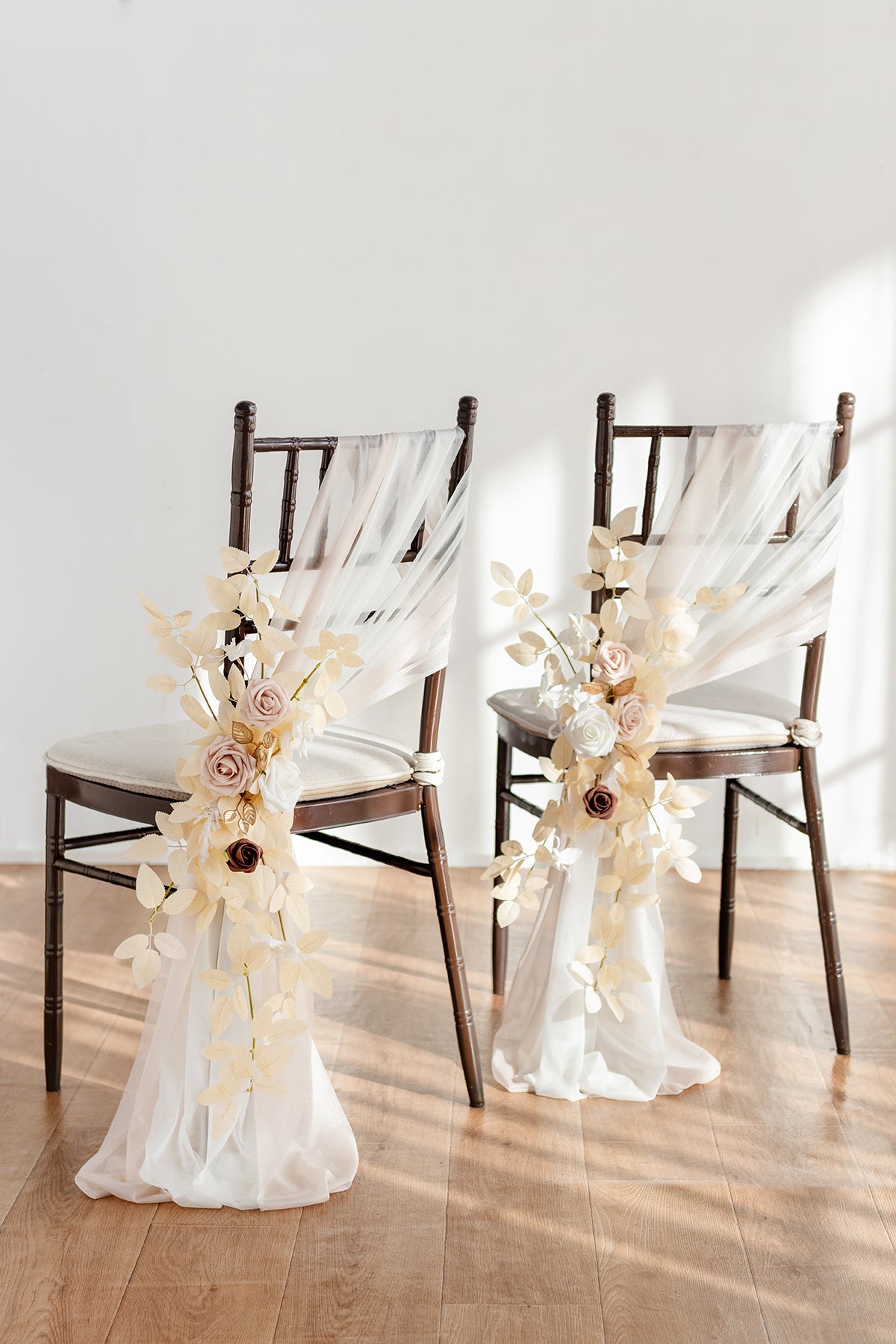 Wedding Aisle Chair Flower Decoration in White & Beige