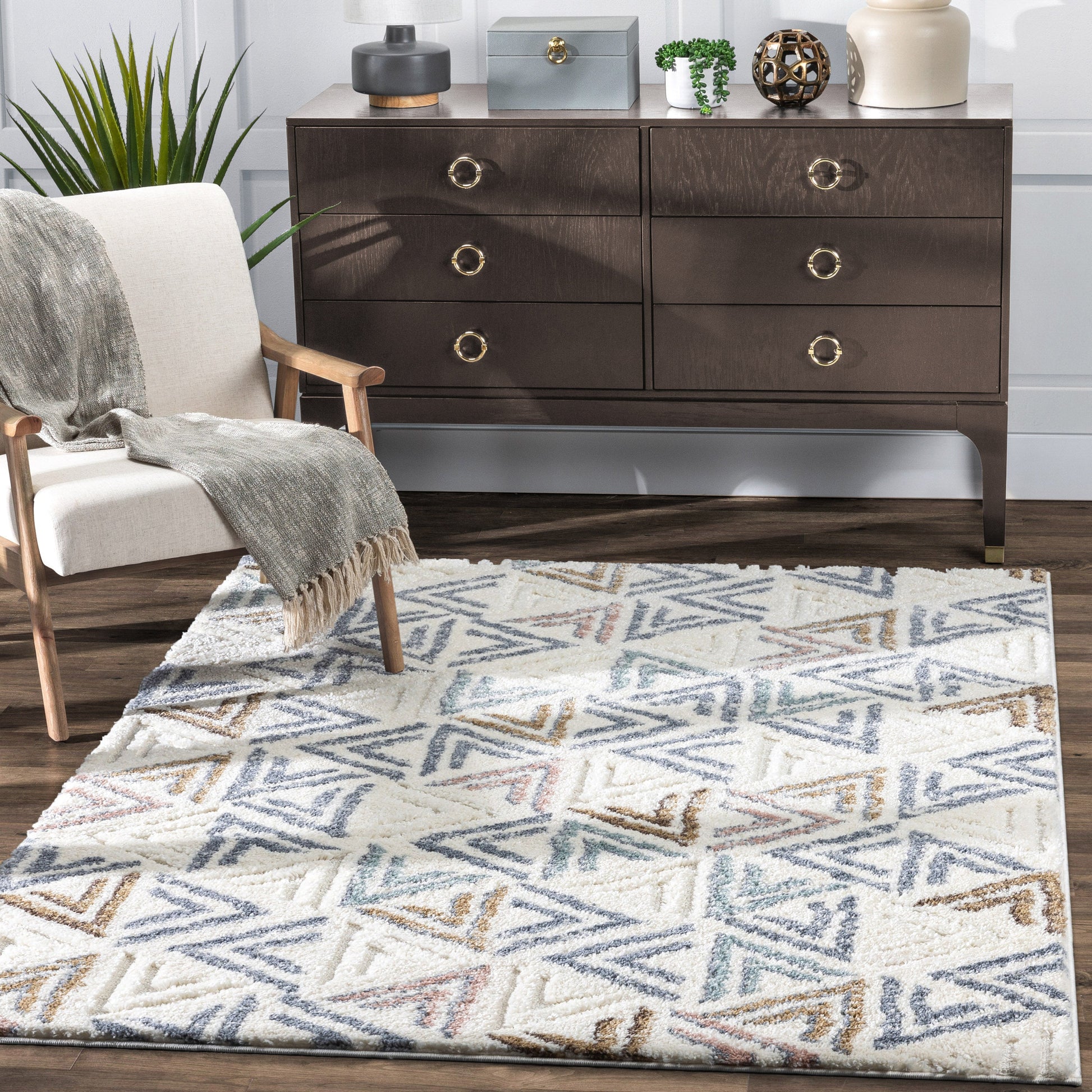 Thanatos Modern Geometric Ivory High-Low Shag Rug