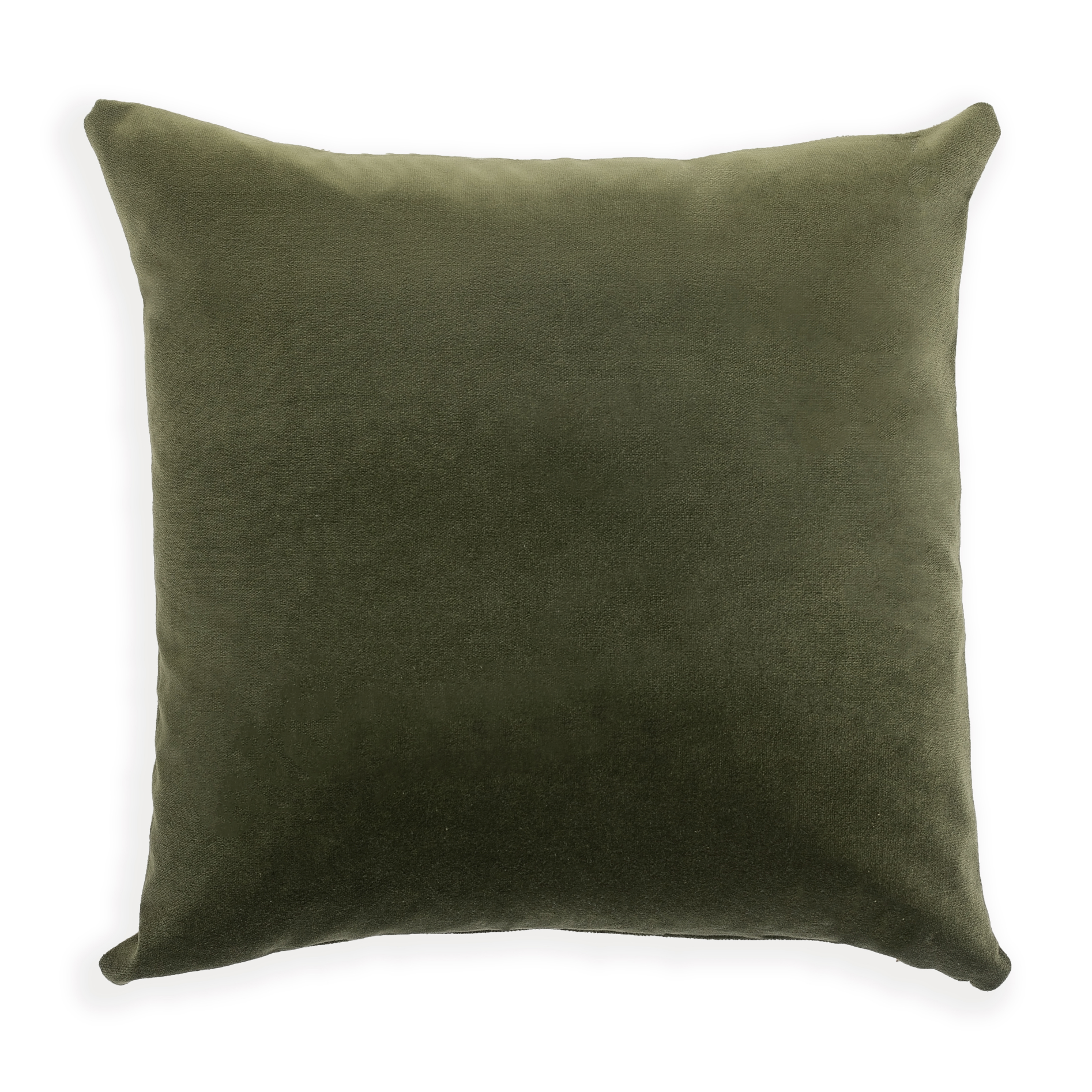 The face of this pillow cover is made with performance velvet which is water and stain-repellant, and with an abrasion rate that can handle even the most well-loved and well–used rooms. It is backed with performance linen and detailed with a brass zipper.
