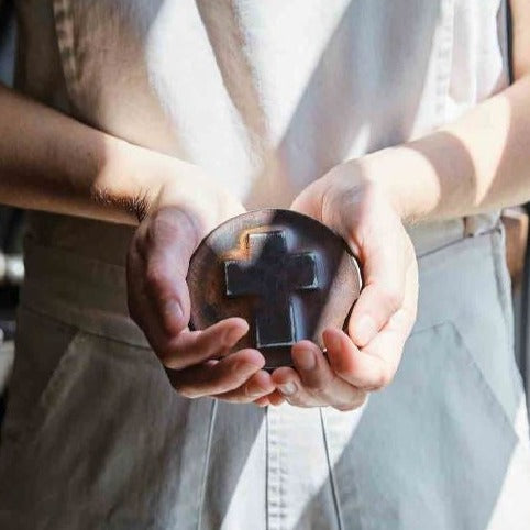 The Jan Barboglio Small Houseblessing is a small circular house blessing box to hold your small treasures.