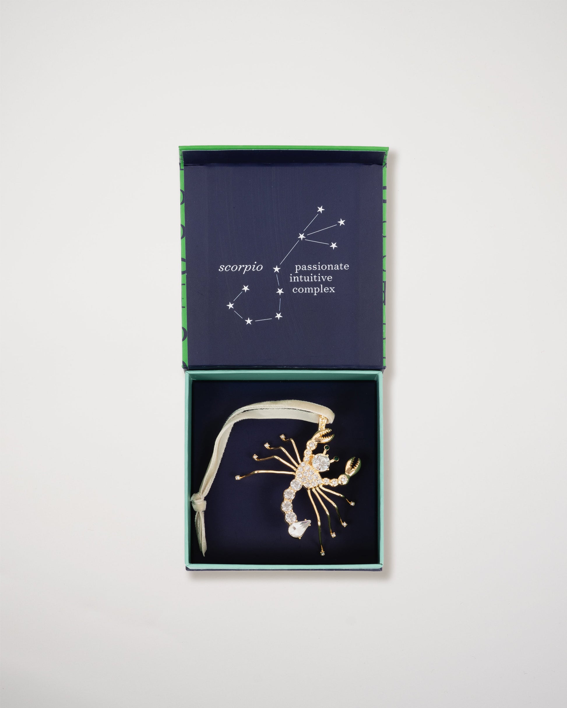 A beautiful hanging scorpio ornament that would make the most wonderful gift. The box comes with a little astrological description of an scorpio all tied up with a velvet ribbon.