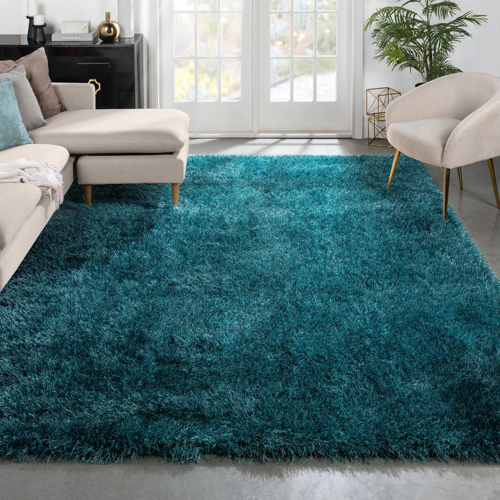 Chie Glam Solid Ultra-Soft Teal Shag Rug