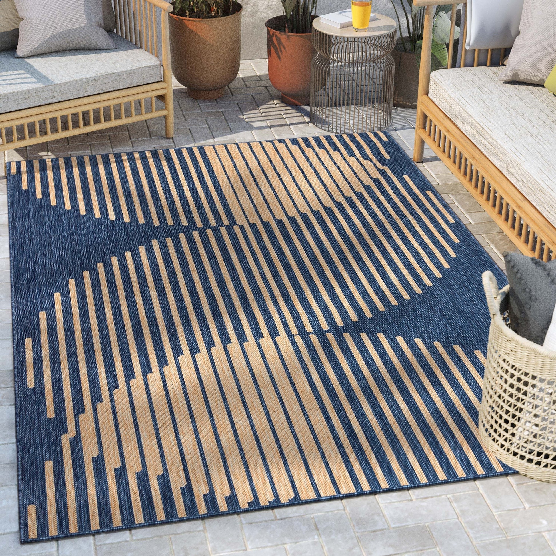 Alder Modern Stripes Indoor/Outdoor Blue Flat-Weave Rug