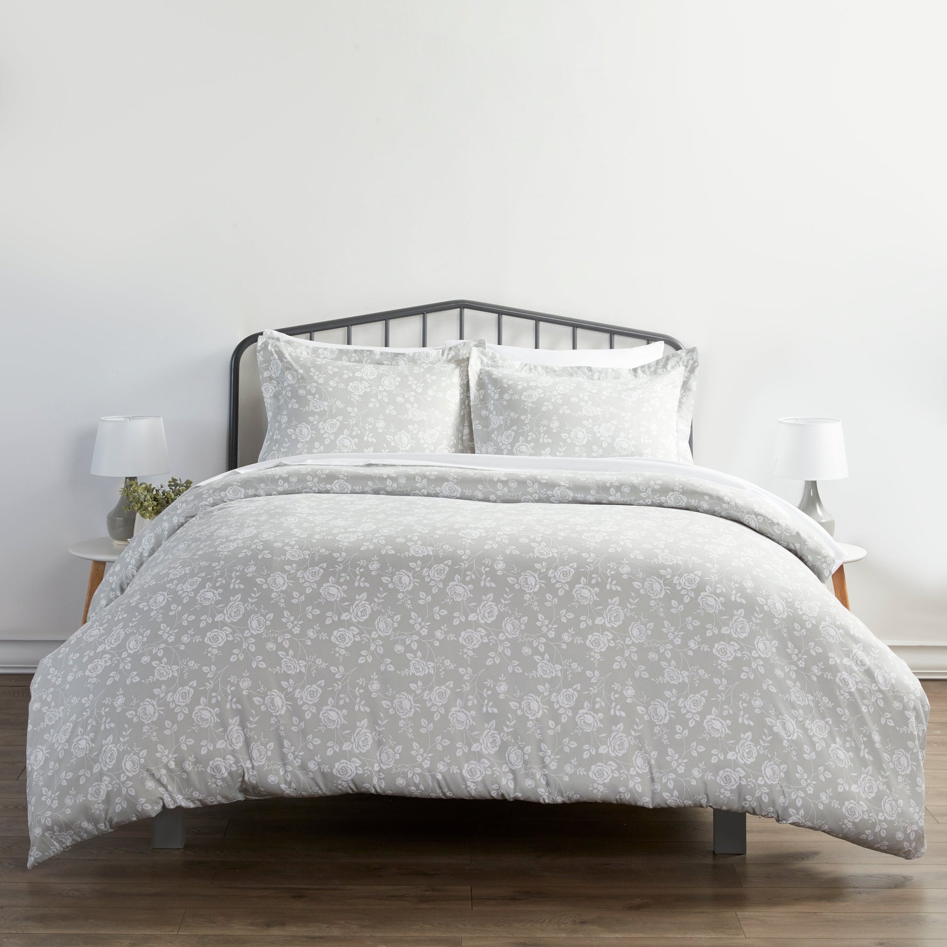 Rose Gray Pattern 3-Piece Duvet Cover Set