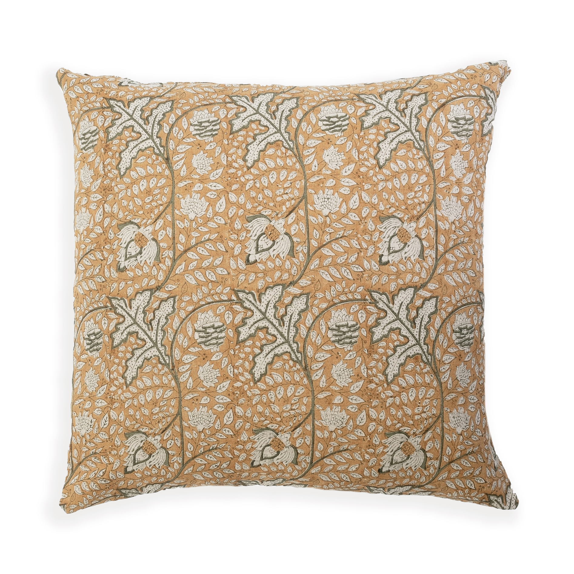This fabric is woven and block printed by hand. Natural imperfections and overlapping block prints in the fabric are possible, we believe they add to each pillow's uniqueness and beauty. The fabric's delicate natural fibers can be damaged by machine washing.