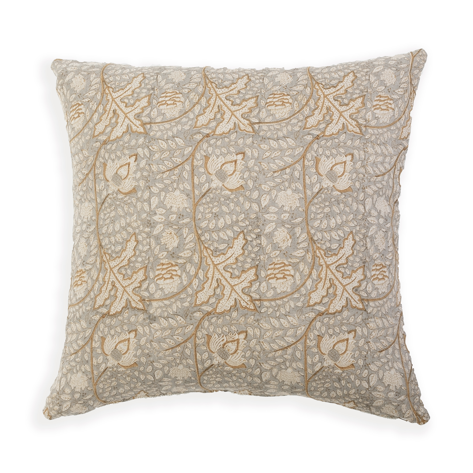 This fabric is woven and block printed by hand. Natural imperfections and overlapping block prints in the fabric are possible, we believe they add to each pillow's uniqueness and beauty. The fabric's delicate natural fibers can be damaged by machine washing.