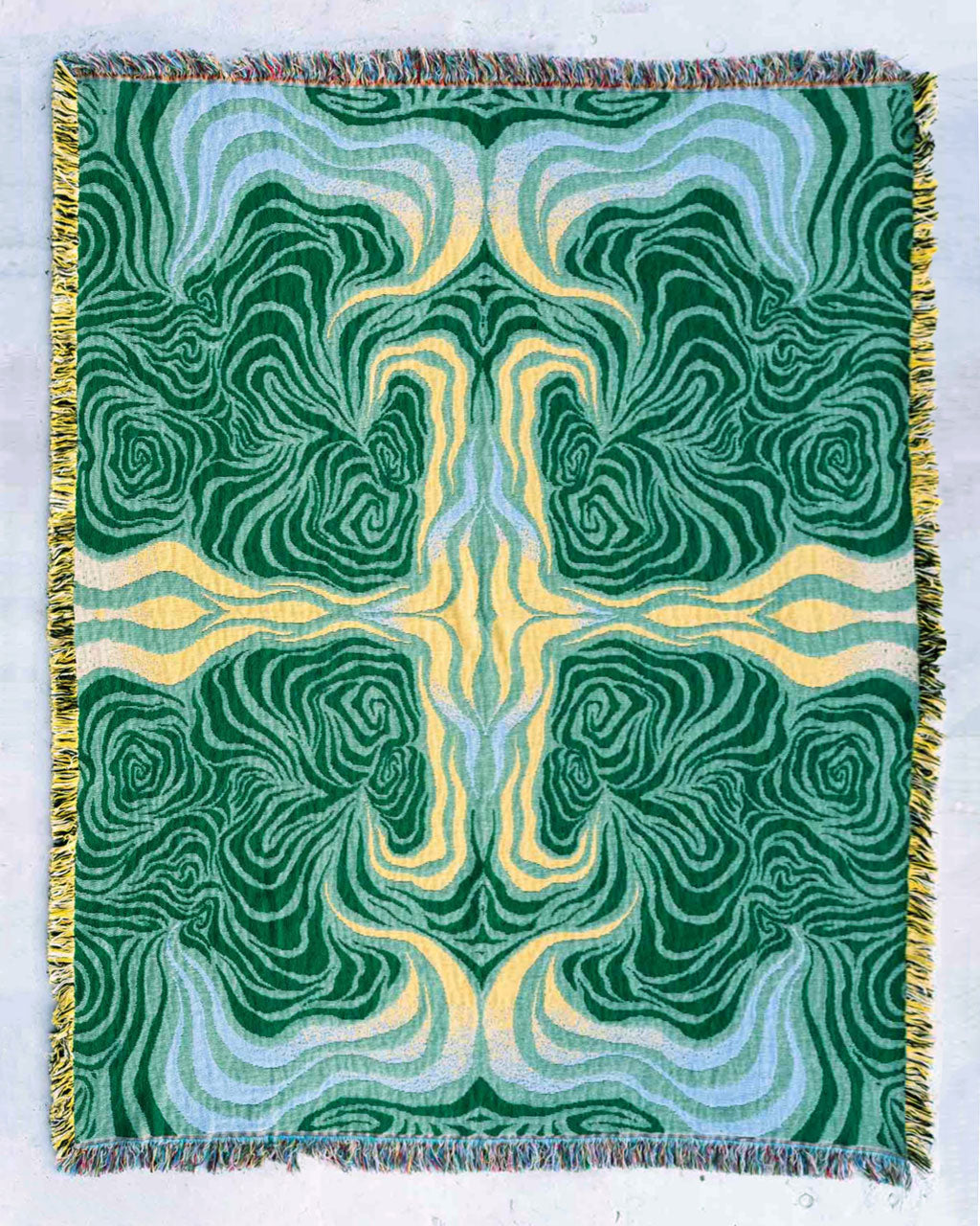 Woven throw blanket in Green Radiance - the perfect safety blanket for your next trip.
