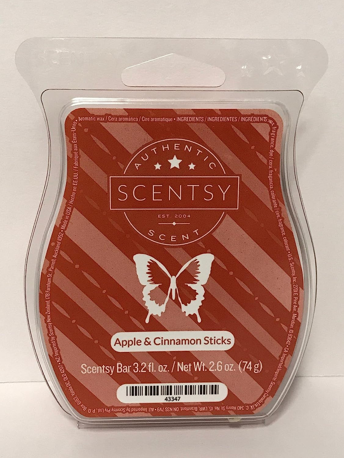 Scentsy Apple & Cinnamon Stick Bar Wickless Candle Tart Wax 3.2 Fl Oz, 8 Squares
