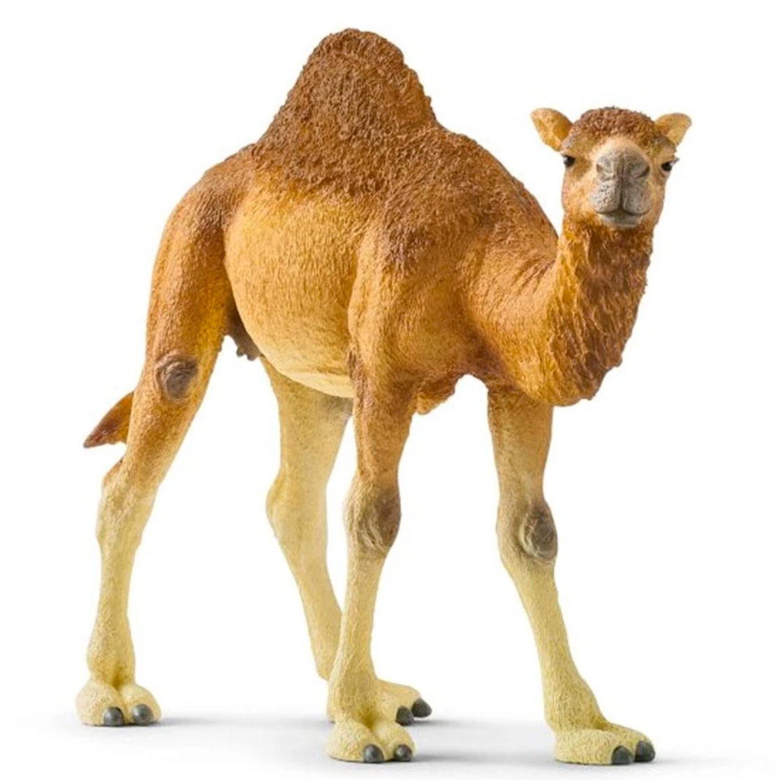 Dromedaries live in the deserts of Africa and Asia. They eat mostly leaves, dry grass and thorny plants. The hump of the mammal isn’t used to store water; it stores fat. If they can’t find any food in the desert they can live off it for weeks. The dromedary from Schleich® Wild Life has eaten well recently and has an upright, well-filled hump.Fun Fact: If a sandstorm comes, the dromedary can close its nostrils so that no sand gets in.