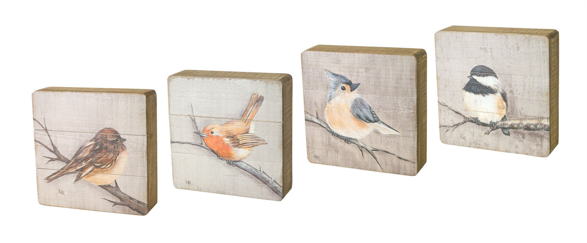 Bring some sizzle to your space with this eye-catching set of four brown solid wood bird wall decor. Inspired by one of nature's most revered icons, this pretty bird inspired artwork will be a beautiful and special addition to your room's decor. Hang on your wall to add some up to date fashion and decoration. Utilize this opportunity to create a focal point in the room with this fabulous wall decor option. 8" H x 2.25" W x 8" D