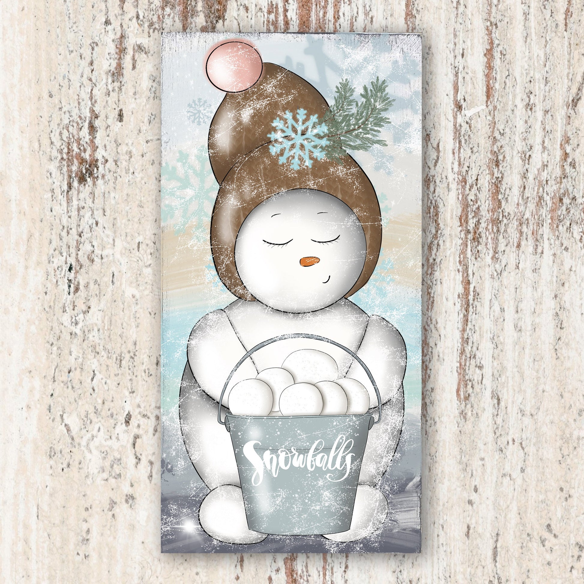 Meet Snowballs! Adorable snowman with muted watercolor background. Add this to your winter decor featuring warm neutral tones.