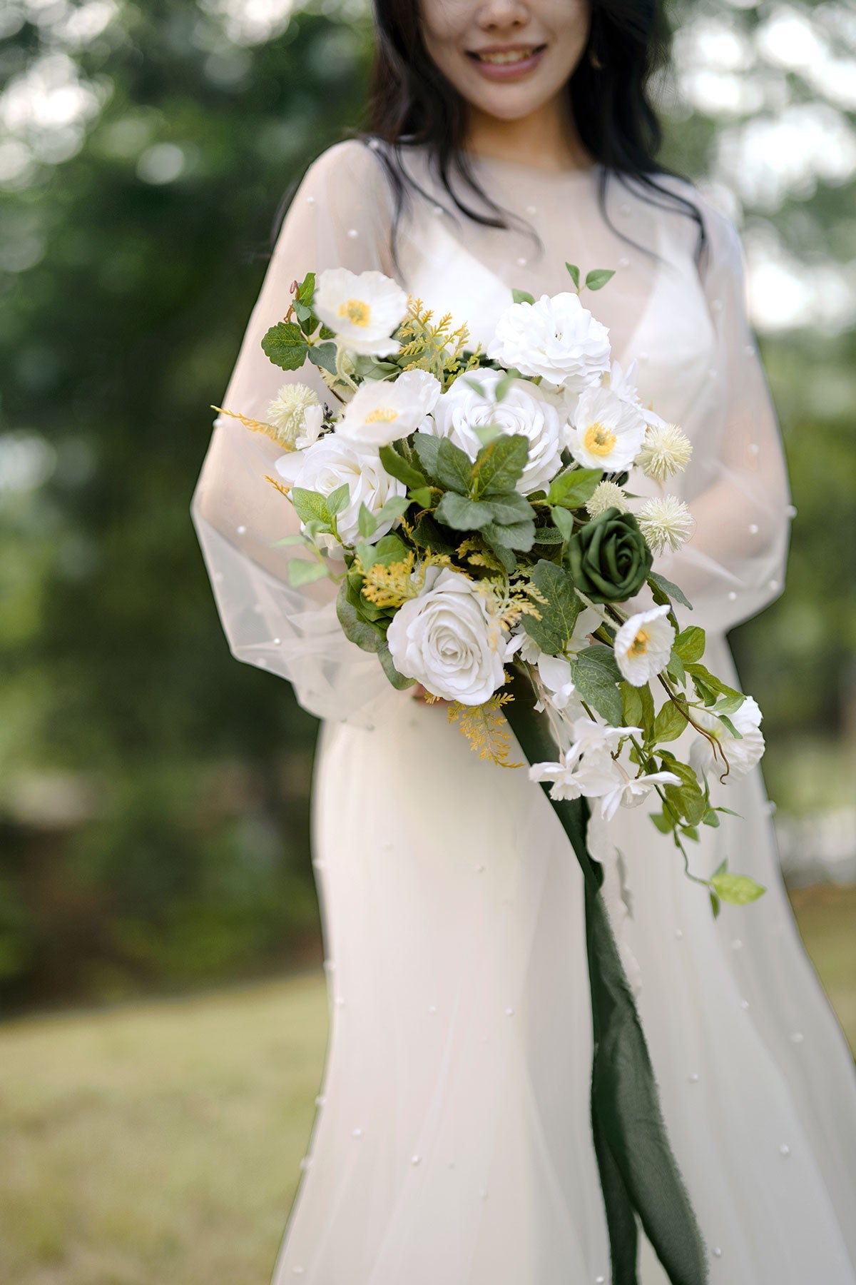 Small Cascade Bridal Bouquet in Emerald & Tawny Beige