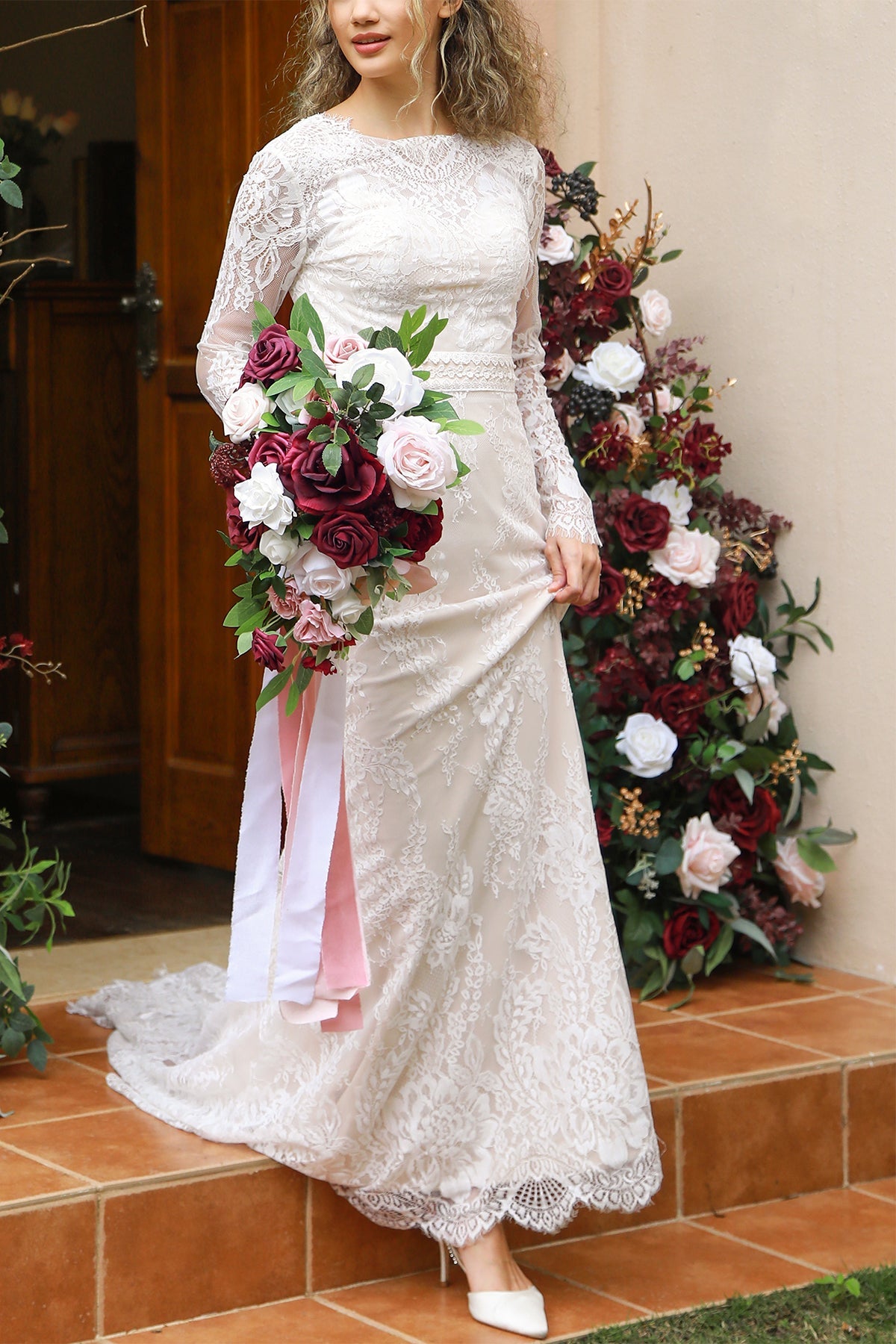 Featuring a blend of passionate marsala and light blush tones, this collection is designed to create the wedding of your dreams. Capture timeless elegance with this classic bridal bouquet and create wedding memories that last a lifetime.