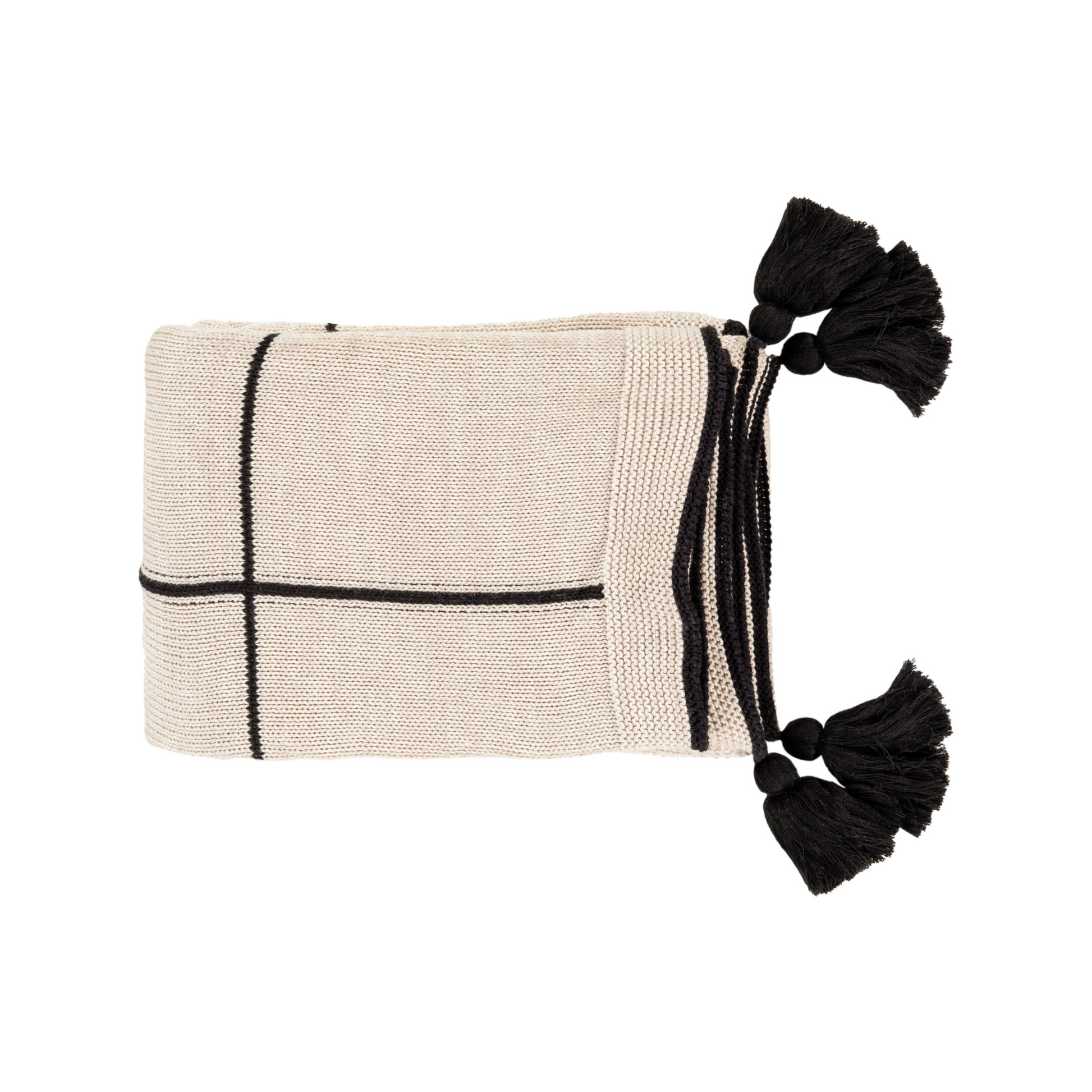 Front: 100% Cotton, Knitted, Tassels, Colors: Front: Beige, Black, Back: Beige, Black, Made in India