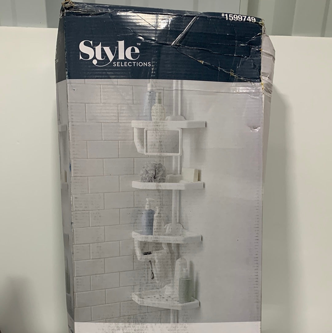 Style Selections White Steel 4-Shelf Tension Pole Freestanding Shower Caddy 13.4-in x 9.4-in x 97-in