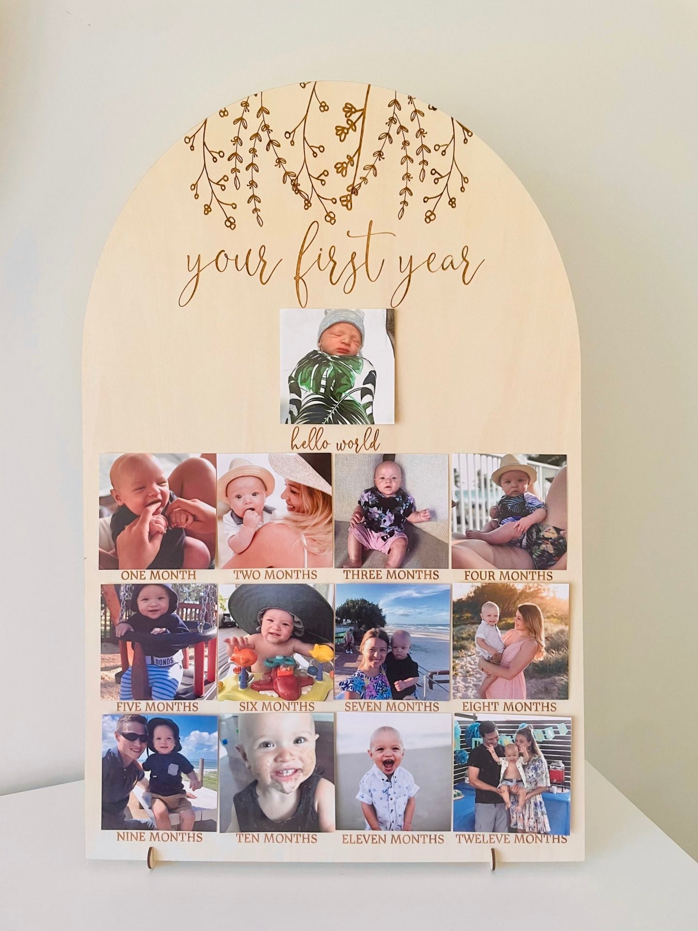 Our Birthday boards are such a fun way to celebrate your little one’s special day. They are a great reminder of how much they have grown throughout the year and they make incredible birthday decor or a keepsake to keep forever. Each board comes with standard writing of “your first year”, if you wish to personalise this please select personalisation option and we can customise to any name/saying you choose.