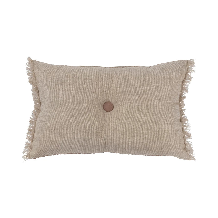 Linen & Cotton Tufted Two-Sided Lumbar Pillow w/ Button & Fringe