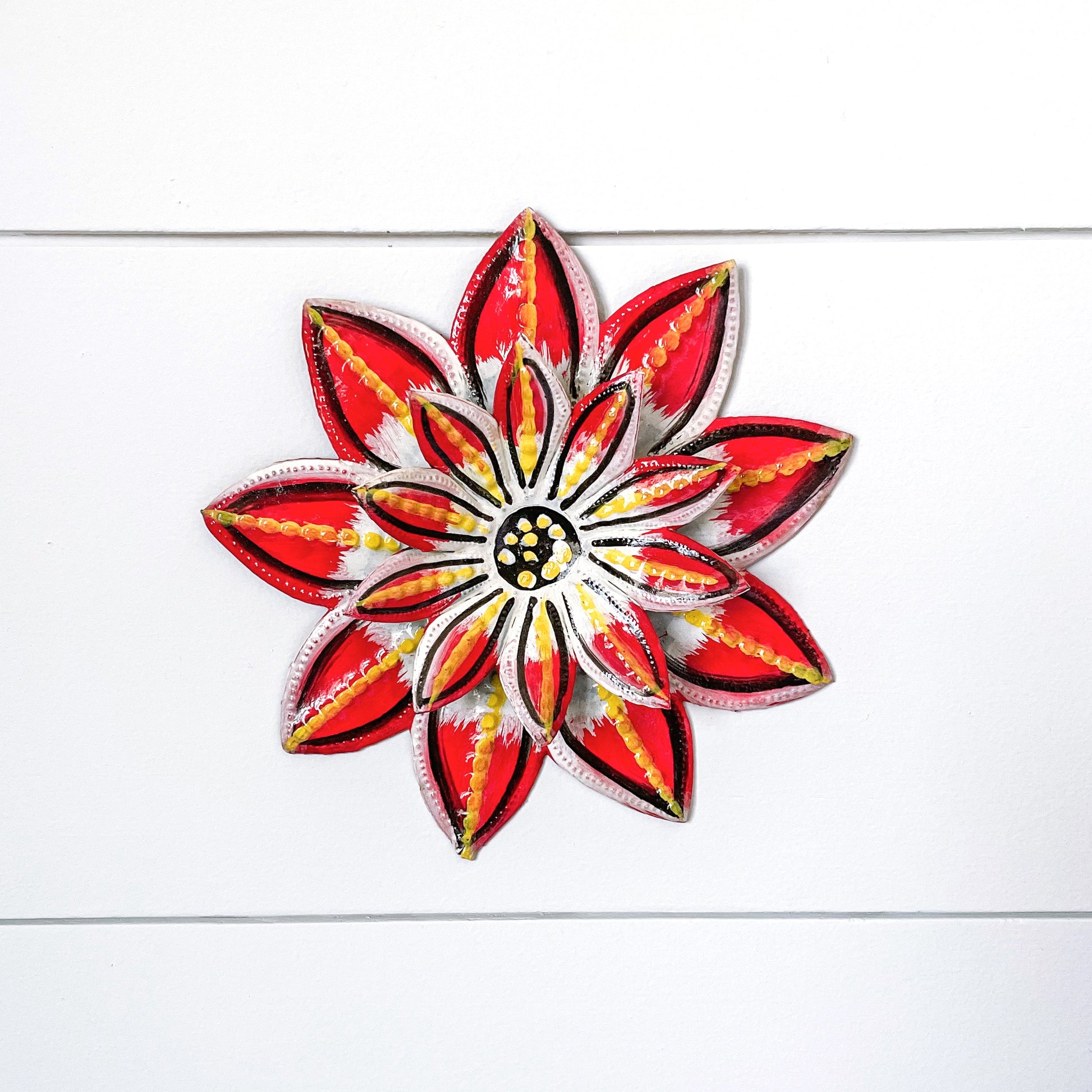 There's nothing shy about this wall flower! Made from recycled oil drums and beautifully hand painted by artisans in Haiti, this flower will brighten up any room or outdoor space.