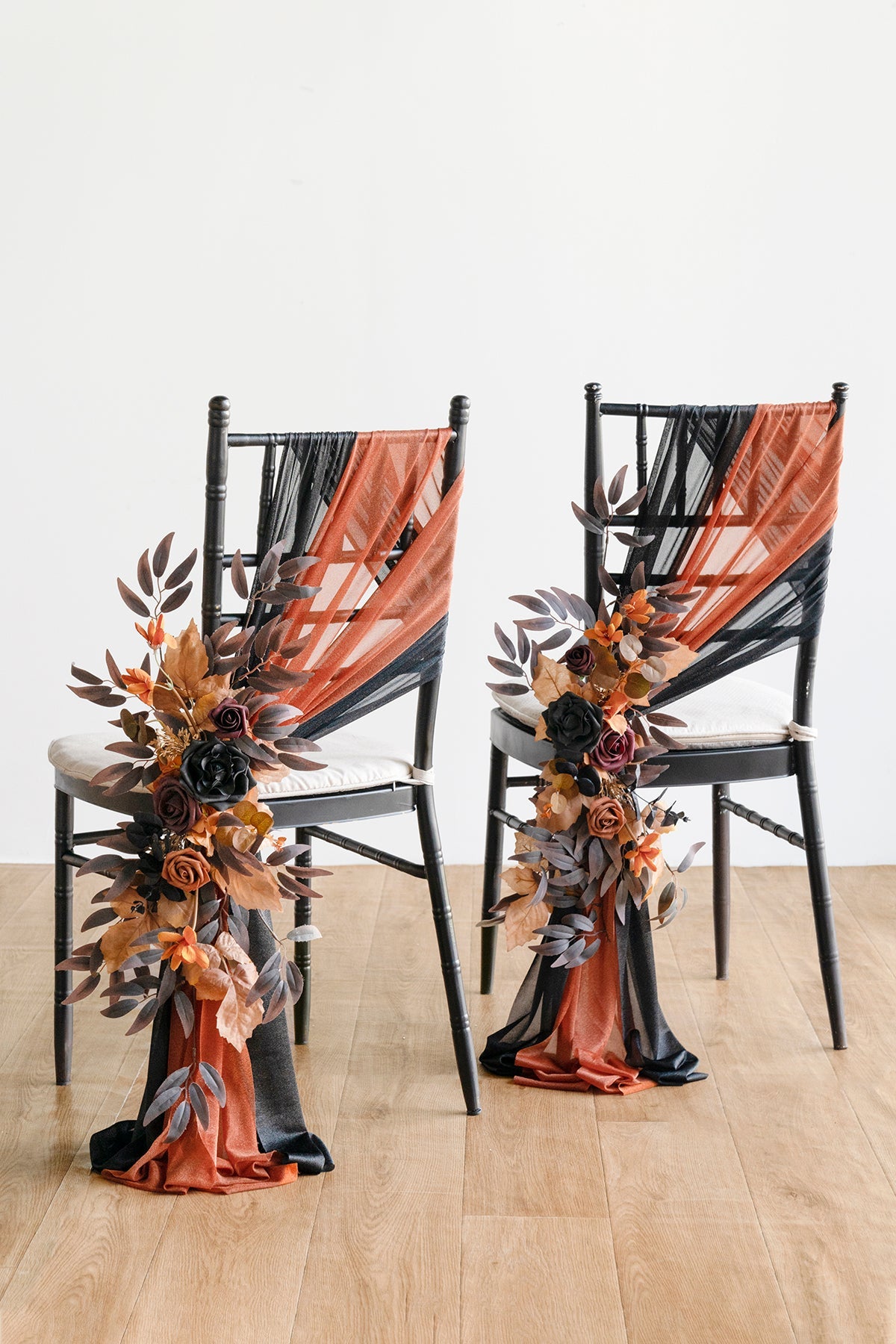 Wedding Aisle Chair Flower Decoration in Black & Pumpkin Orange