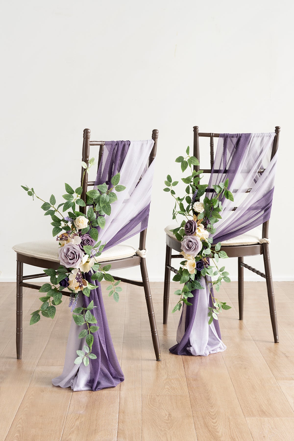 - Package: Each wedding chair flower decor is 24" L x 10" W, with fixed 1 ribbon each to easily tie around kinds of chairs.