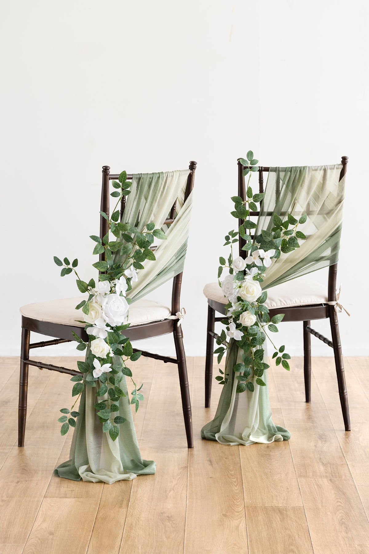 Wedding Aisle Chair Flower Decoration in White & Sage