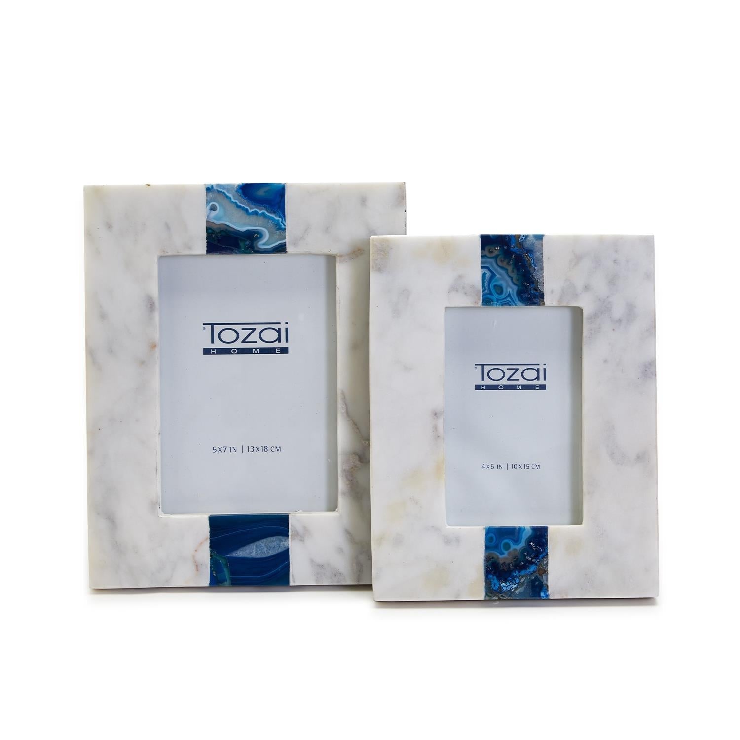 A chic way to display your family portraits and pictures of loved ones. This agate frame complements any nightstand or side table.