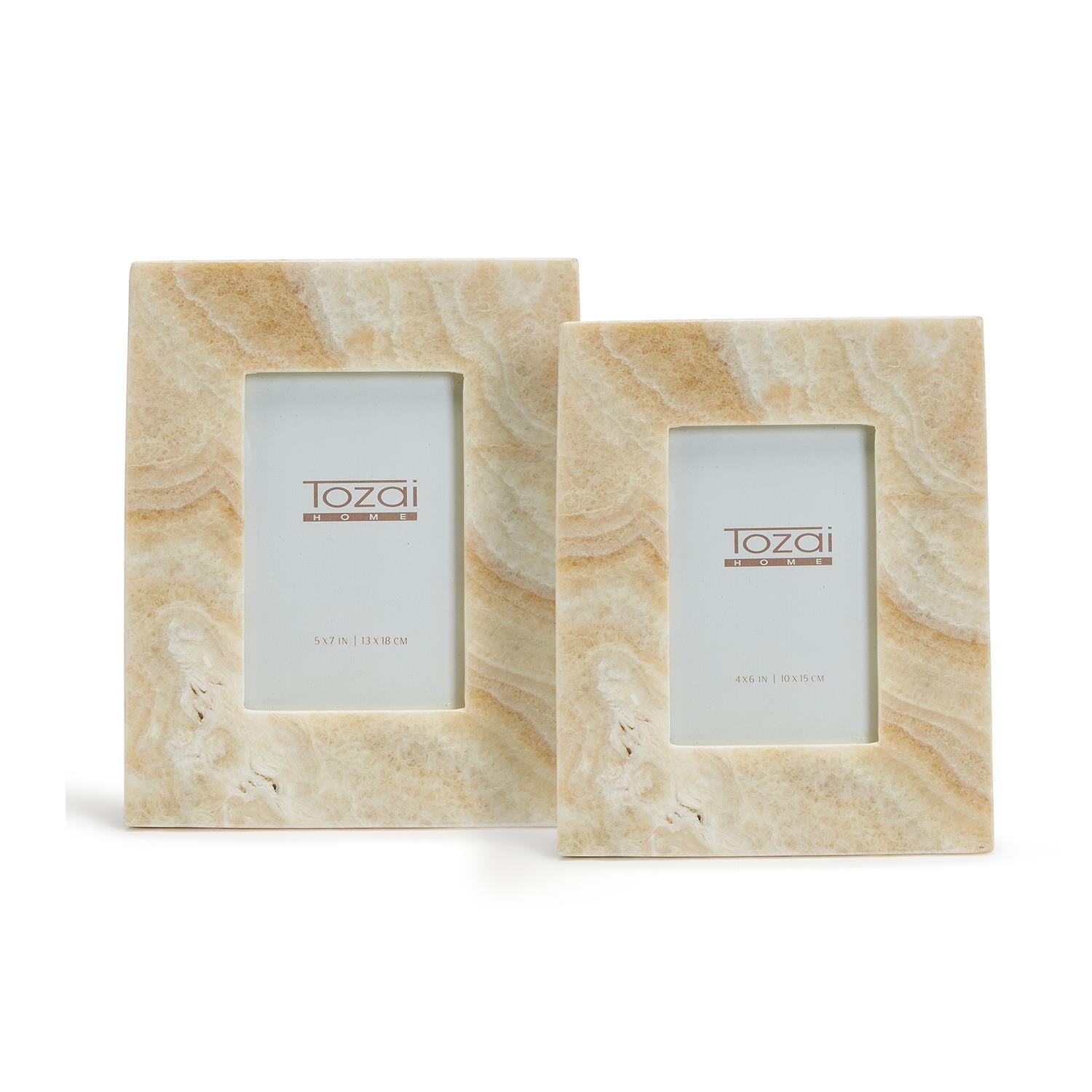 Picture frames should be sophisticated and artful like these natural onyx designs. These genuine onyx frames make for a textured addition to any stone. As with natural onyx, each piece will have variances in color and pattern; no two will be exactly alike.