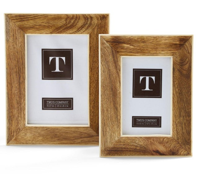 Special memories captured on film are bordered in distinguished Mango Wood in these two photo frames. Each design stands vertically or horizontally depending on your photo.