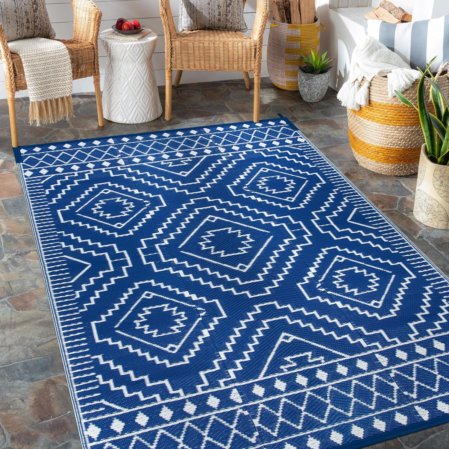 【Reversible Rug】 Bring a touch of moroccan charm to your outdoor space with our plastic outdoor rug. Its reversible design lets you switch up your decor easily and enjoy different color combinations that's perfect for your deck, patio, balcony, and more.