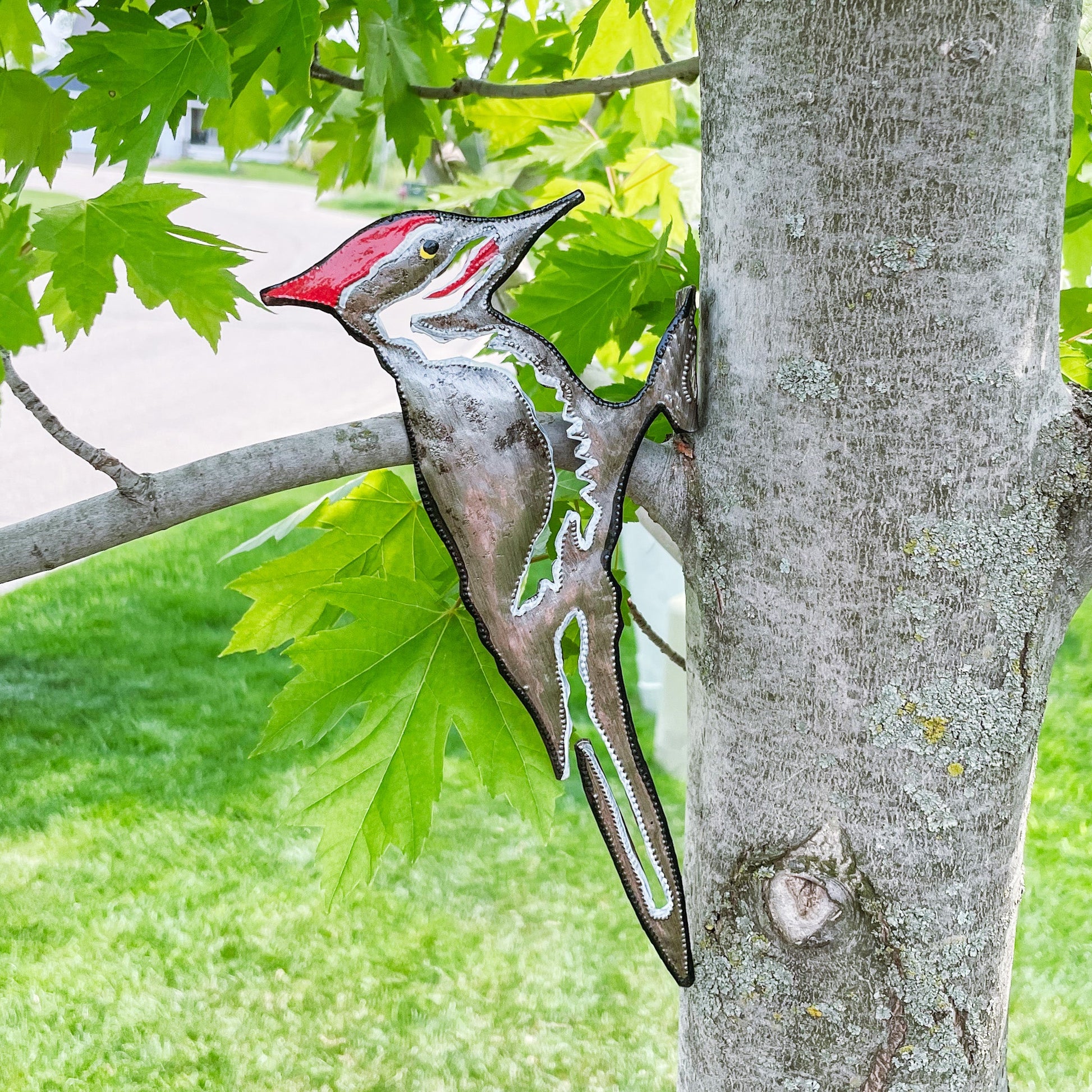 This handcrafted metal woodpecker is a cheerful decoration for your backyard or garden! Use screws (not included) to attach this bird to your decking, a fence post or tree.