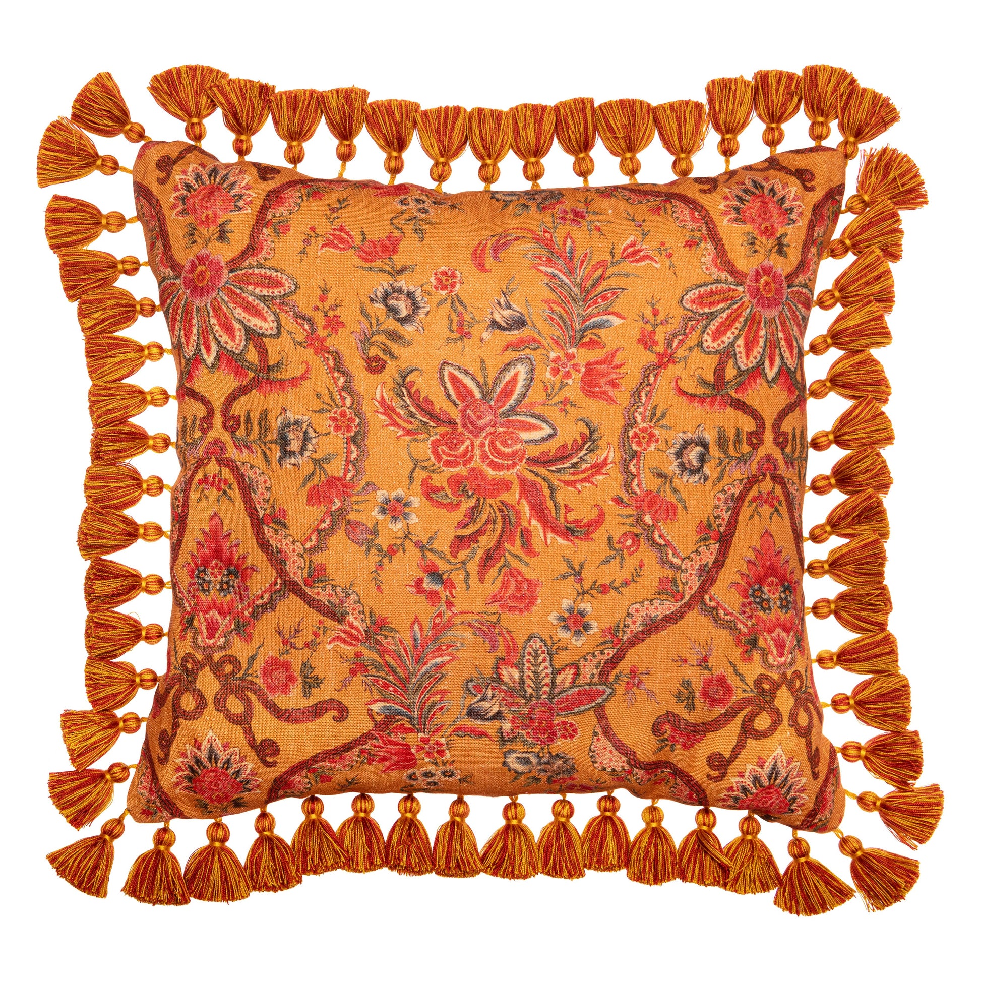 Encapsulating the ambience of the festival entirely, this vivacious design creates a show stopping statement with its swirling floral forms and bold color palette. Referencing the fashions of the era, the popular psychedelic prints, and the birth of ‘flower power’, the WOODSTOCK pillow transports the sense of freedom and courage which many witnessed at the festival itself. Adorned with matching tassels, this pillow will bring joy and radiance to any setting.